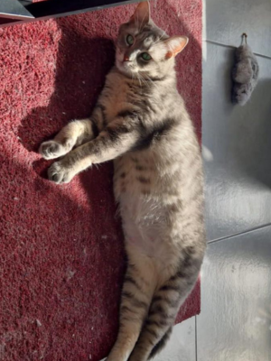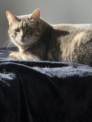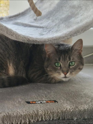 Pendant longtemps, elle a vécu dehors, glissant entre les rues comme une ombre discrète. Elle faisait partie de ces chats que l’on croise sans vraiment les voir. La rue lui a appris la prudence, l’observation… mais elle n’a jamais effacé sa douceur naturelle.