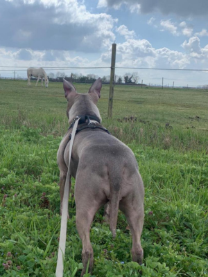 Marche en laisse & sorties : Bases acquises. Maitika connaît les ordres « assis » et « viens ». Elle est à l’écoute et cherche à faire plaisir lorsque la peur s’estompe.